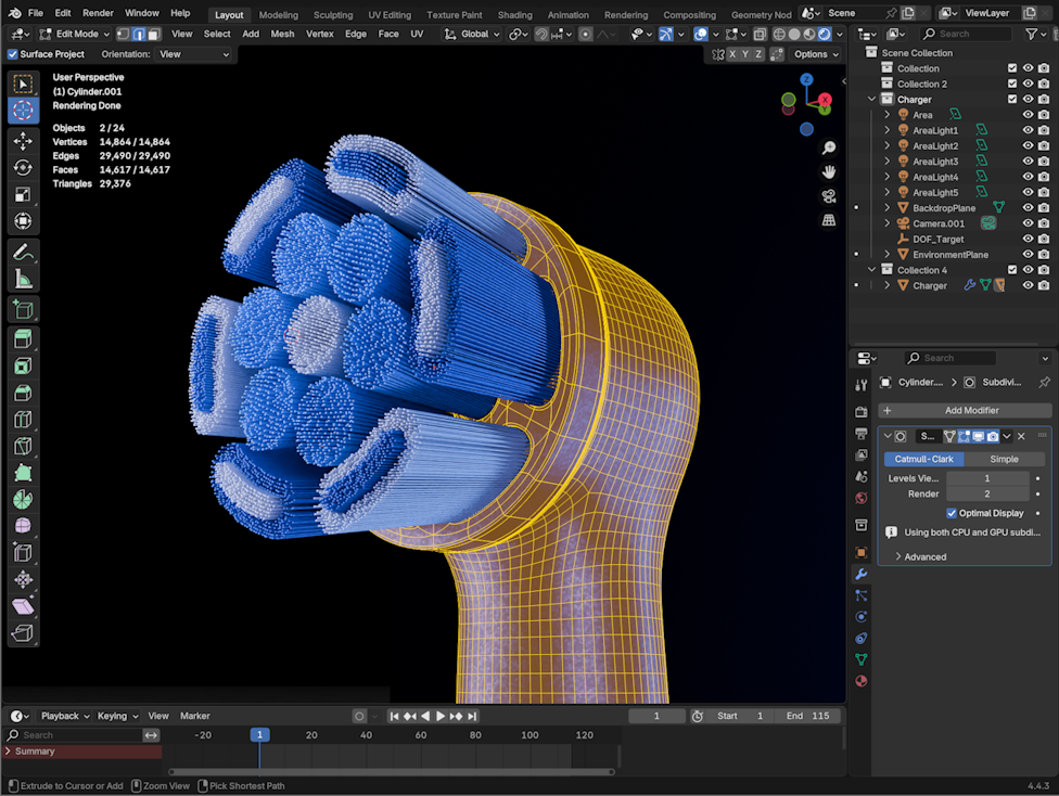 Use Blender to produce stunning product footage by following along the entire process of visualizing an electric toothbrush. You will learn to model products with well-functioning topology, procedurally texture your models by creating and layering texture maps, prepare beautiful lighting environments, render and post-process multiple animated scenes showcasing the product.