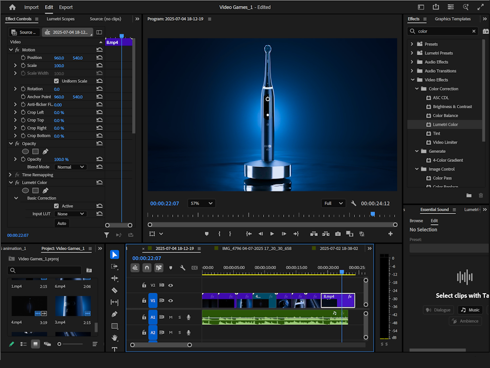 Render 8 different scenes and combine, edit and post-process them using simple video editing techniques to produce a deliverable or portfolio-ready video file.